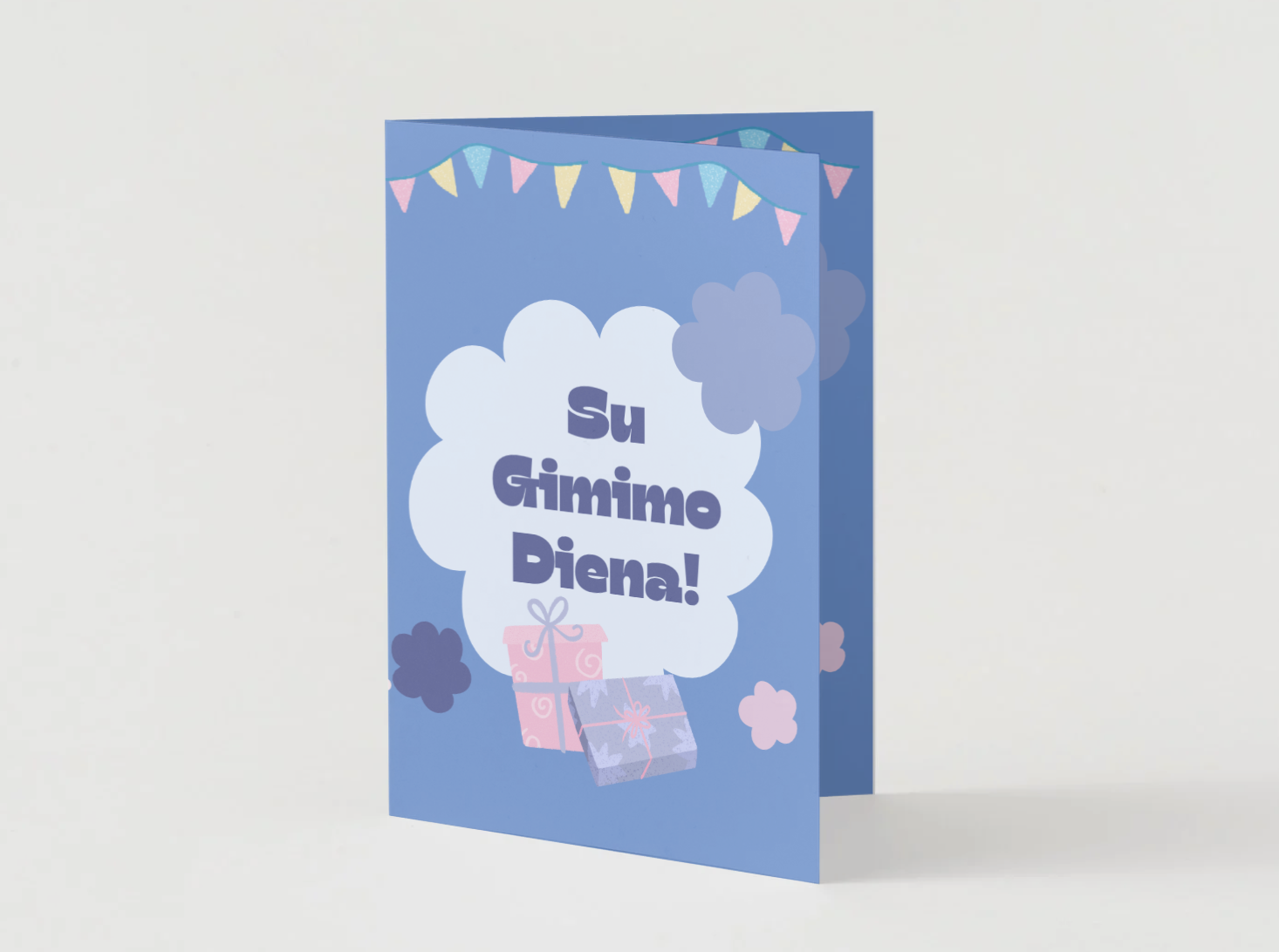 Atvirukas „Gimtadienio Spalvos“, sulankstomas, 210 × 148 mm. Sukurtas ir atspausdintas Lietuvoje.