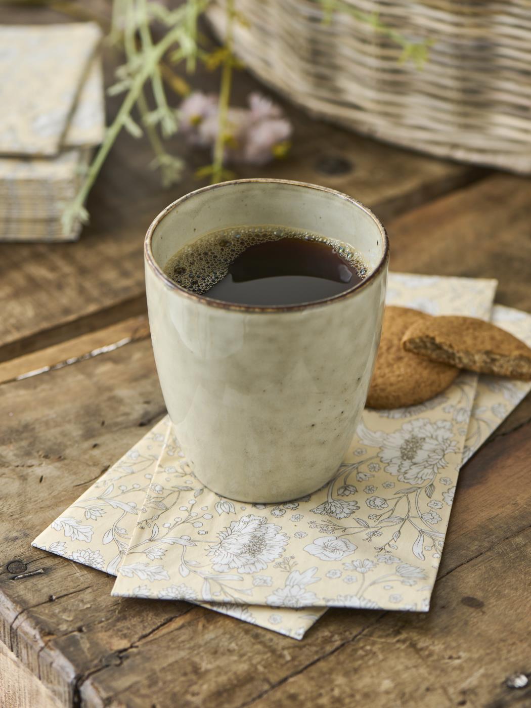 „Sand Dunes“ puodelis be rankenėlės – pagamintas iš akmens masės, šis puodelis išsiskiria subtilia glazūra ir šiek tiek nelygiu, neapdorotu paviršiumi, kuris kiekvienam gaminiui suteikia unikalų charakterį.