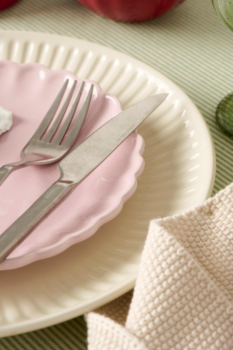 Rausva „Mynte“ lėkštė (English Rose), Ø 19,5 cm. Akmens masės, tinkama orkaitėje, mikrobangų krosnelėje, šaldiklyje ir indaplovėje. Saugi sąlyčiui su maistu.